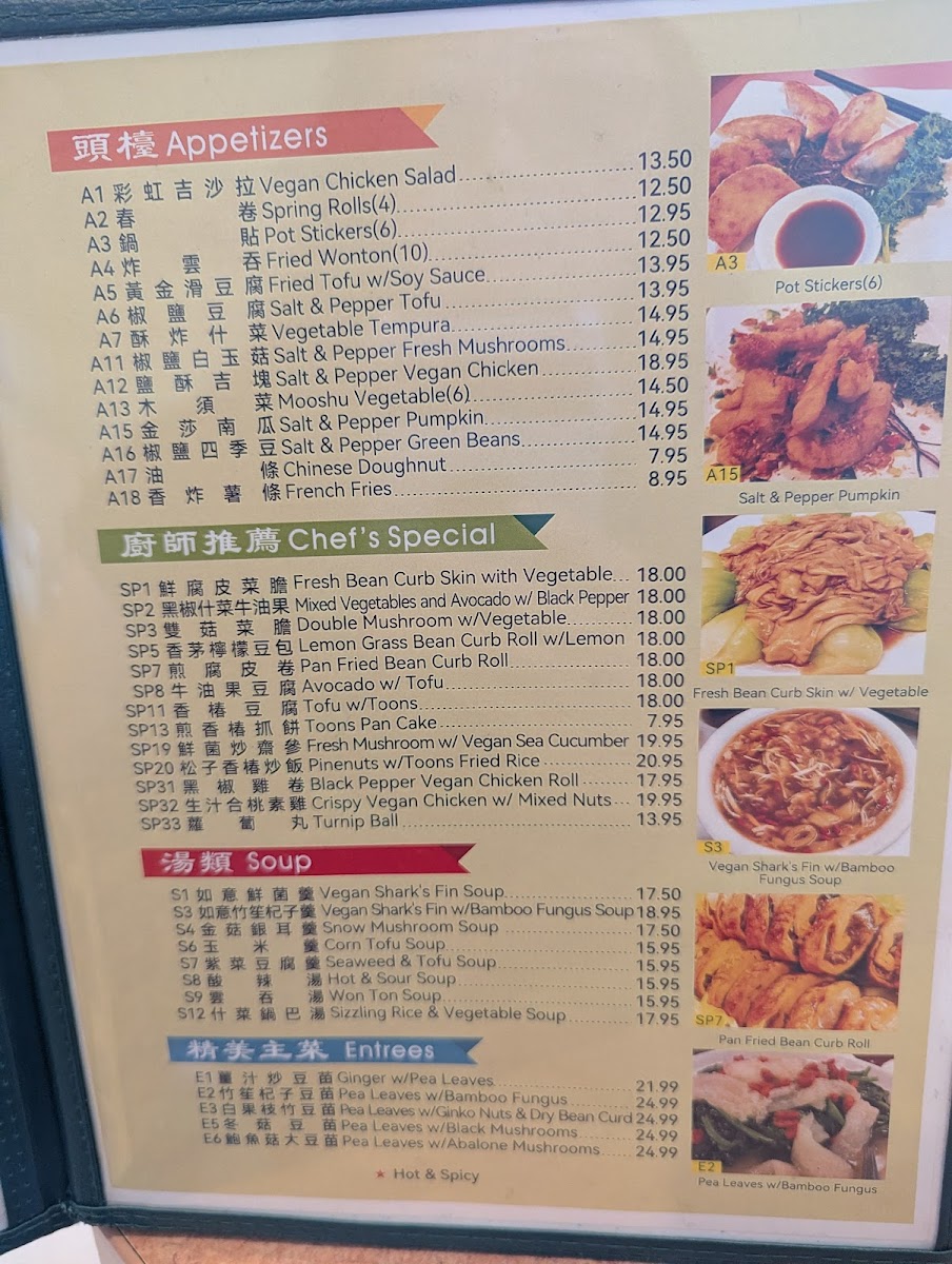 Tender eggplant, wheat gluten, and pumpkin in a savory sauce.